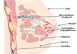 La mama está compuesta de grasa, tejido fibroso y glandular. En su interior hay vasos sanguíneos, ductos lactíferos, glándulas, grasas y nervios sensoriales. Por debajo de las mamas está el musculo que ayuda a mover el brazo.